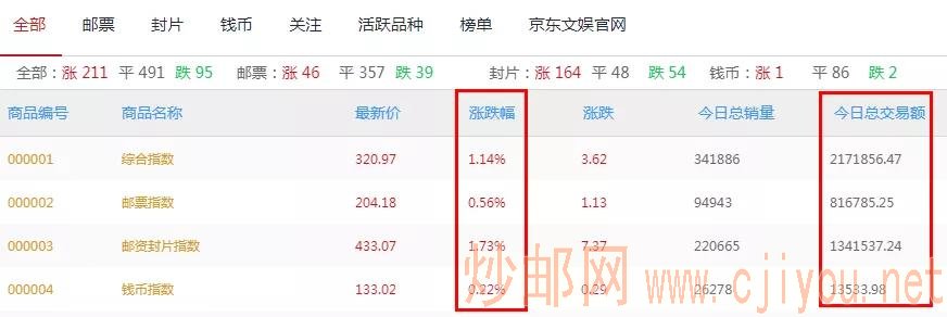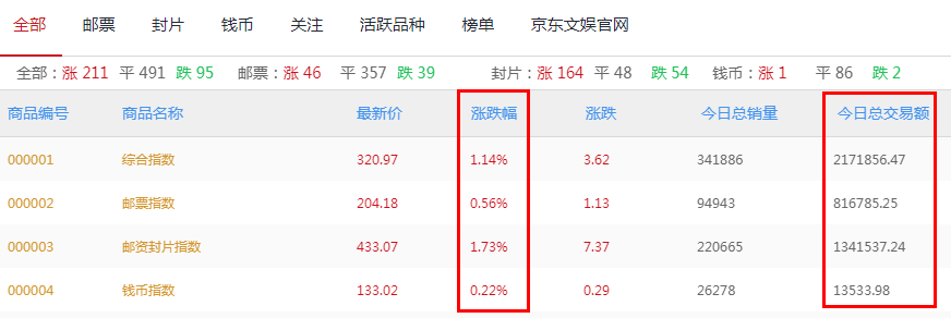 京东文娱寄卖商城商品行情(目前主要分析邮资封片、邮票和钱币板块),以下图表皆可点击放大查看。