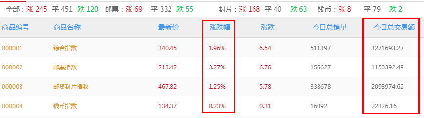 京东文娱寄卖商城商品行情(目前主要分析邮资封片、邮票和钱币板块),以下图表皆可点击放大查看。