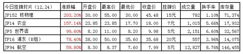 四,今天挂牌封片表现