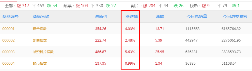 京东文娱寄卖商城商品行情(目前主要分析邮资封片、邮票和钱币板块),以下图表皆可点击放大查看。