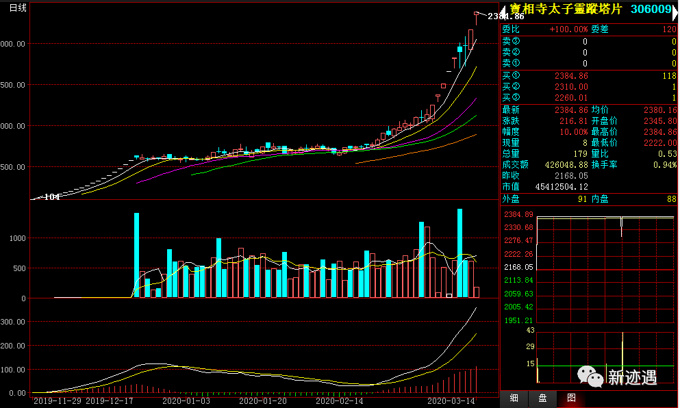 周一,3月9日,注定是国际文交所一个里程碑的日子。当日9:40分,国际大盘钱邮指数突破历史高点250.46点;10:21分,国际大盘综合指数突破历史高点251.14点。最终国际大盘大阳冲击历史新高,综合指数涨4.62%,报252.45点;钱邮指数涨4.78%,报255.7点。白盘夜盘互转政策实施以来,第一个转回白盘品种---惠州西湖,强势涨停。北京民居4连板,宝相寺、道德、奥运片三连板。七届人大开始崛起。创历史新高品种有:驻澳部队、55周年、北京民居、天柱山、宝相寺、瓷房子、八卦一、电子鸡。国际文交所投资人协会主席王福斌先生代表平台首次做客抖音直播间和国际会员及感兴趣的社会人士进行了互动,人气高、效果比较理想。周二,国际大盘首次力扛美股熔断暴跌等外围资本市场压力,在盘中走出V形震荡上攻,再次中阳创出新高。综合指数涨2.5%,报258.75点,已经高出去年最高点7个点;钱邮指数涨2.66%,报262.5点,高出去年最高点11个点。全市61只品种有11只涨停,涨幅超5%的有18家。缩普新龙头宝相寺连续四个涨停板;驻澳、美食、人大2连板。今日富贵和荷花开始上台表演。创历史新高品种有:驻澳部队、55周年、北京民居、天柱山、宝相寺、etc。盘后国际平台发布了《2020(交)第090号 关于设立停复牌板块的意见征集的公告》,准备为长时间停牌品种寻找合适的出路。周三,国际大盘“一波三折”再次创出历史新高后小幅震荡。综合指数跌0.15%,报258.35点;钱邮指数跌0.38%,报261.49点。全天是自大盘2月下旬启动以来品种跌幅相对最多最大的一天,但是,表现比较好的品种还有不少,全市61只品种有10只涨停,和昨日基本持平。七届人大、驻澳、美食3连板,富贵有期、惠州西湖2连板。前期强势品种如金达莱、瓷房子、55周年进行调整。低价片有移动,出现三个品种集体涨停。当天点评文章提醒注意短线风险。周四,国际大盘继续在盘中“一波三折”小幅震荡调整。综合指数跌1.93%,报253.37点;钱邮指数跌1.98%,报256.32点。全市61只品种有5只涨停,另外停复牌板块有2只品种涨停,涨停品种数量较昨日减少一半。跌停品种4只,调整较大的品种增多。驻澳开始跌停;七届人大一字涨停4连板;富贵有期3连板;昔日明星洛神赋临近尾盘拉出第一个涨停。周五,国际大盘再次力扛“三重压力”没有出现较大跌幅。早盘连续两波下跌,创出日内新低,午后逐步震荡反弹小幅下跌。收盘综合指数跌1.0%,报250.83点;钱邮指数跌0.78%,报254.33点。全市61只品种有3只涨停,较昨日减少2只。跌停品种5只,比昨日增加1只。整体跌幅偏大和调整的品种数量较多。驻澳、55周年再次跌停,七届人大小幅调整,富贵有期3连板后开盘突然直线下跌封死跌停。缩普板块新龙头宝相寺太子涨停,超跌反弹的洛神2连板。盘后笔者文章重点指出综合来看,大盘明天应该走出一个调整到位再次向上的走势。周六,周六,国际大盘和昨日笔者预测判断的基本吻合,在连续3日小幅调整到位的情况下直接反身上攻,盘中最高上涨3.82%,下午2点后有所回落,收盘综合指数涨2.75%,报257.73点;钱邮指数2.8%,报261.44点。全市61只品种有48只红盘报收,其中9只涨停,较昨日增加6只。跌停品种2只,比昨日减少3只。成交量1.07亿元,是2020年以来国际大盘成交首度超过亿元。行情在上涨、成交在放大,局面将越来越好。当天活跃品种较多,缩普宝相寺太子开盘直接涨停,带动其它四只缩普大幅上涨,荷花、洛神、鸿运等先后奔向涨停板。下午2点后,先后有瓷房子、惠州西湖、兑奖蛇、55周年、清华银、抗战等涨停或冲击涨停板。驻澳3连跌停。