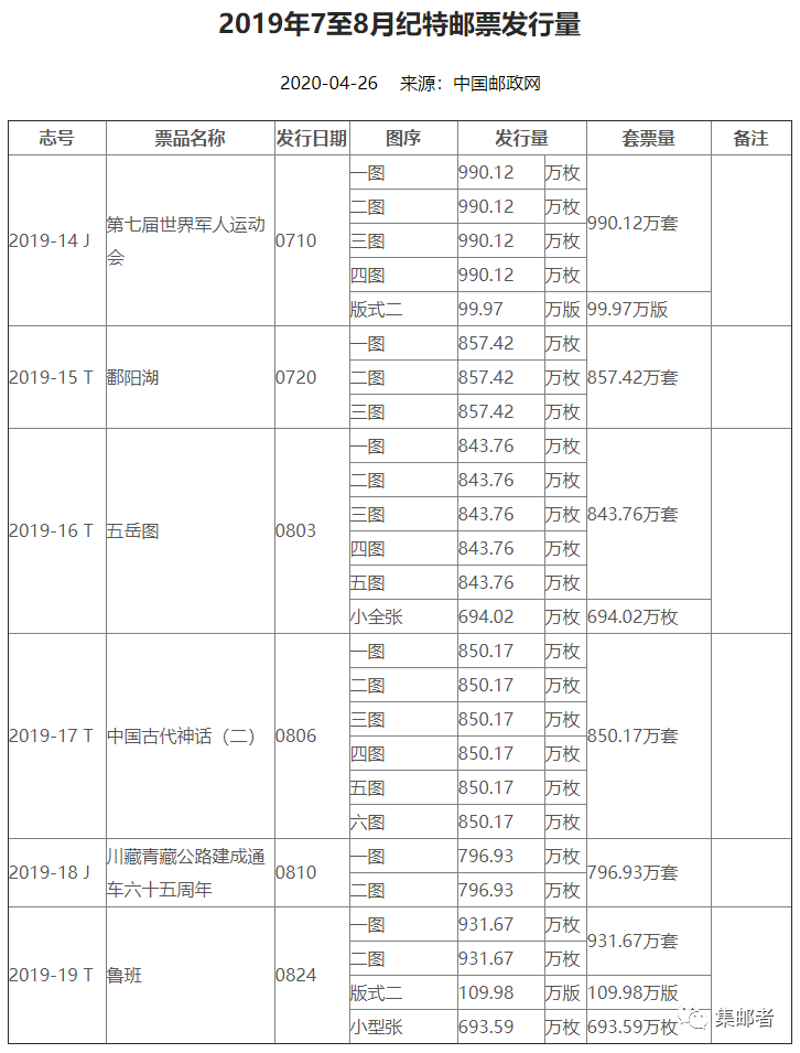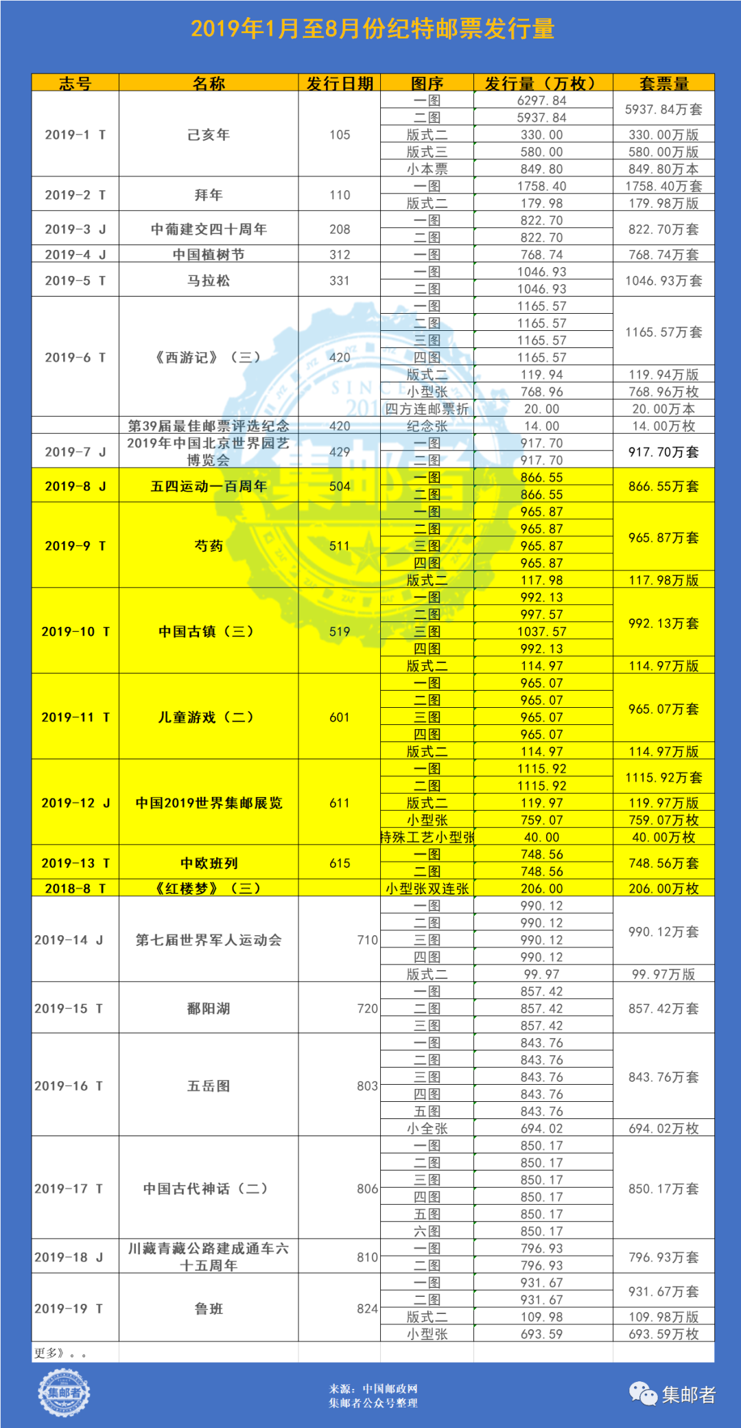 在2019年7-8月邮票发行量公布后,已发行却未知的新邮发行量只剩下2019的9月到12月的了,从2020年新邮发行前就公布计划发行量后,对于邮票无论从收藏或投资来讲,都更加的透明化。