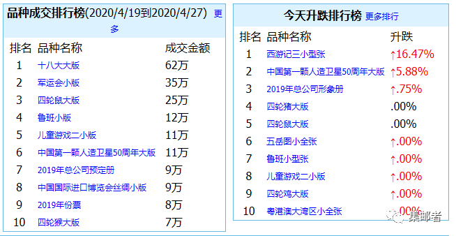 而2019年小版的涨幅比例完全超过了大版的涨幅,而2020年小版的品种再次差少后,对于邮市资金来讲可以减少更多的压力,对于2020年小版的行情小集个人认为或许比2019年小版还更有潜力。不知道2019年最后4个月未公布的新邮发行量,是否还会惊喜出现呢?让我们拭目以待吧。