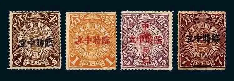 辛亥革命胜利后,在南京成立了临时政府,孙中山就任临时大总统。中华民国成立后,清朝的邮票即不应再用。最早的民国邮票,即在清代伦敦版蟠龙邮票上加盖文字“中华民国”使用。