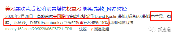 对于驻澳的国际的这样情况,我知道不少国际会员是比较吐槽的。其实,不必。为何不必呢?因为不但A股有权重品种大幅影响指数的情况,就连世界警察家的股市也是由被人咬了一口的苹果,以及微软、亚马逊、谷歌等权重所绑架。