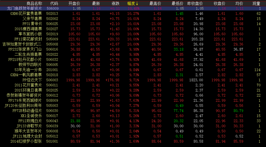 涨幅榜方面,菊花邮资封、草书宣纸小版、黄帝片、牡丹花都小片继续高攀,早盘高开小幅成交大涨收红。张家界天门山震荡交投蓄势上涨,尾盘上攻走高,涨停收尾。二轮猴阶段性上行,买卖互动蓄势上涨,早盘上涨收红。成交活跃度方面,红楼梦小型张、终审法院走势稳健微涨前行,早盘开启小幅成交,午盘持续跟进,领跑成交榜。香港猴下探回升继续微涨上行,买方扩大投入,买卖互动交投成交量扩大。唐诗、蛇行大运、三轮羊、三国五、澳门海事等微涨收红,午盘持续小幅成交,买卖互动活跃盘面交投。如果不是你的工作,而你做了,这就是机会,但是机会总是乔装成麻烦的样子,而让人无法抓住。麻烦来了,一般人的第一反应是逃开,因此也就错过了机会。