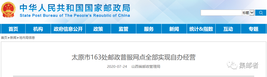 集邮者讯(JYZhe.com),根据国家邮政局最新消息,山西太原市163处邮政的普遍服务全部实现自办经营: