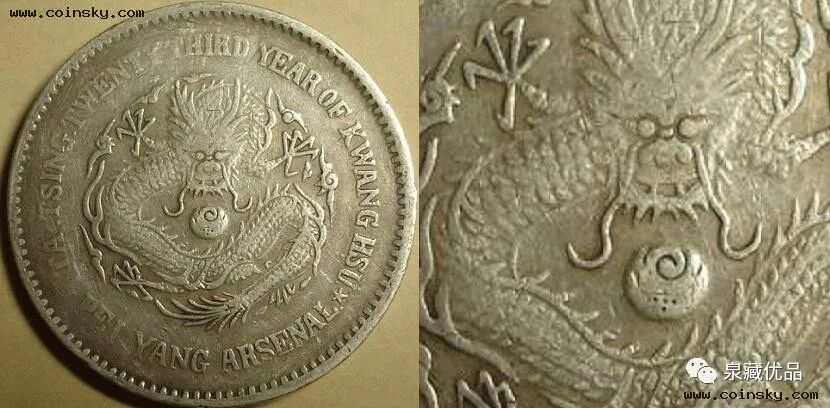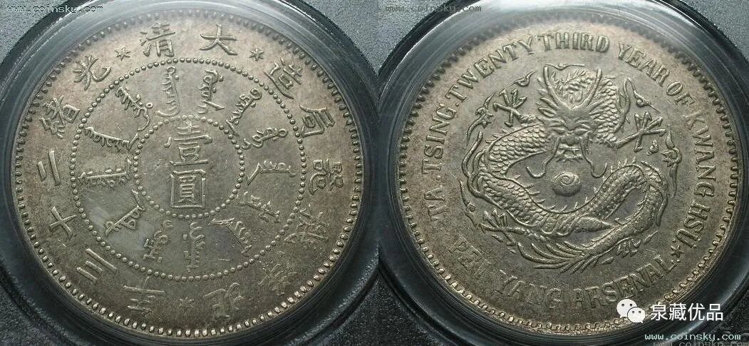 光绪二十三年,北洋机器局引进外来设备已经到位,产量在短时间内得以迅速增大,磨具需求量也大大增加,一些资料说北洋机器局在铸行银币之初便有中国技师参与磨具制造,北洋二十三年之所以版别众多,也正是由于这些因素。根据普遍认同的分类,大致有三: