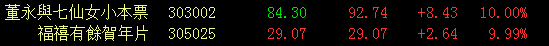今日低价票里《董永七仙女》 《福禧有余》强势涨停!近期低价票龙头《感谢有你》已经连续多个交易日涨停收盘,今日有所调整。