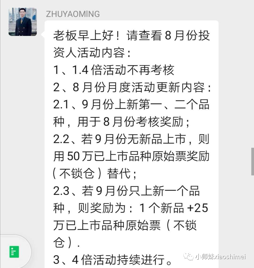 这几天,盘子里最热的品种要数河南风光。河南风光库存414万,当时在政策面不明朗、国际文交所行情极端低迷的情况下,有人认为这就是垃圾货,赔本的买卖,谁也不愿意接手,甚至配售给散户,散户也是一片骂声。危急时刻,ZHU总挺身而出,以解平台之忧。朱总接过来之后,没有把她当做垃圾,朱总以他多年的投资经验 ,认识到这也许是一块璞玉,需要时间打磨,潜心为她设计了一条成长之路。官方平台对于敢于做事主力的扶持和奖励,给予了朱总极大的信心 ,散户追捧资金少没有关系,定位就是:河南风光片A组必须做大市值。才是唯一出路。打造大盘蓝筹股。携手共赢。走自己的赢利模式。迎接邮币卡的春天到来。与热爱河南风光的朋友们共创美好未来。