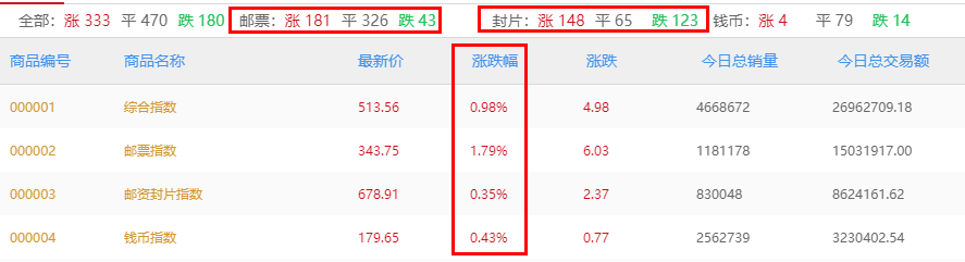 京东文娱寄卖商城商品行情(目前主要分析邮资封片、邮票和钱币板块),以下图表皆可点击放大查看。