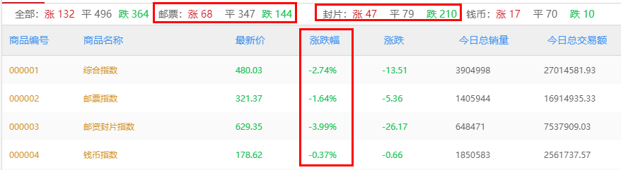 京东文娱寄卖商城商品行情(目前主要分析邮资封片、邮票和钱币板块),以下图表皆可点击放大查看。
