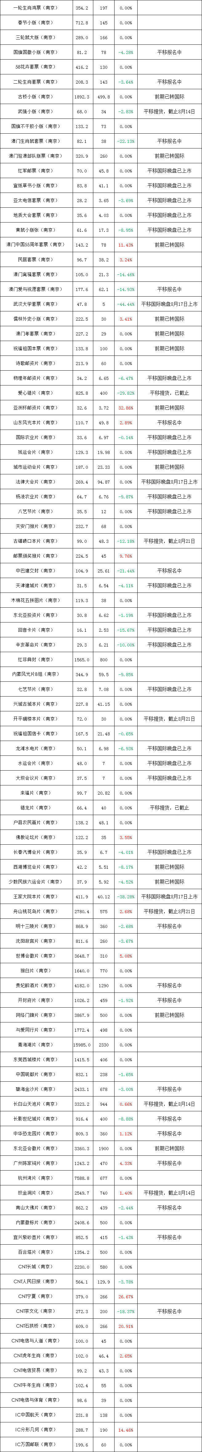 北京(马甸)邮票行情