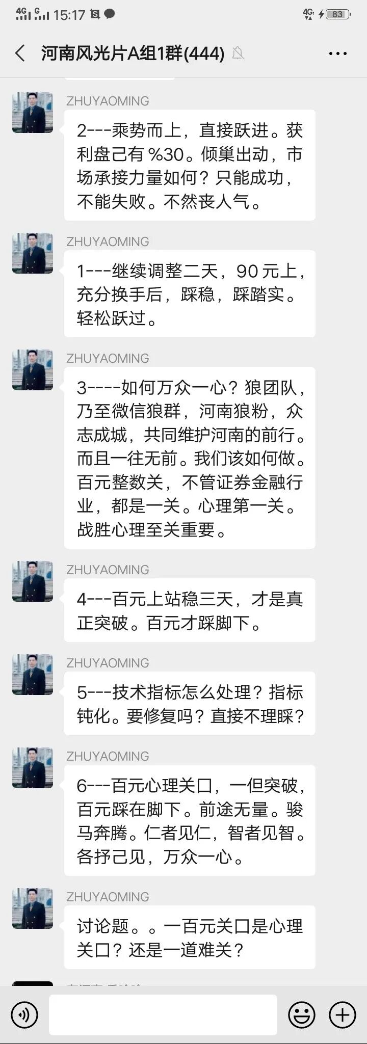 盘后,在风光面临百元关口,朱总提出了几个问题将在群内讨论!