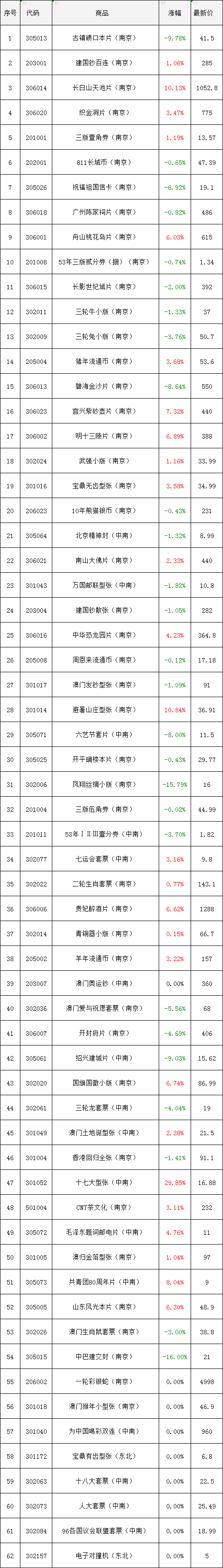北京(马甸)邮票行情