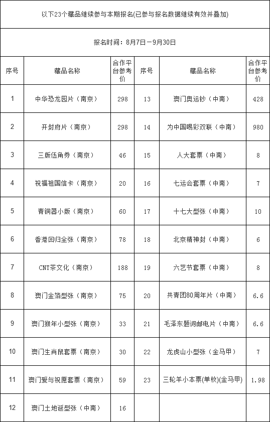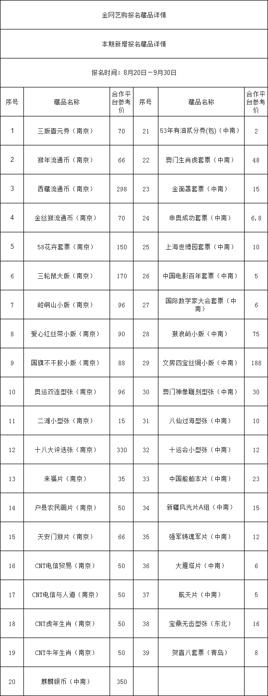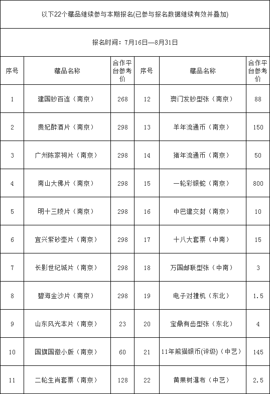 2020年(交)059号 关于新增藏品开放报名转至合作平台挂牌交易通道的公告