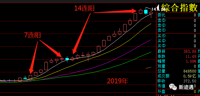 2019年的春季行情,曾经走出7连阳+1阴+14连阳的超级大牛市。