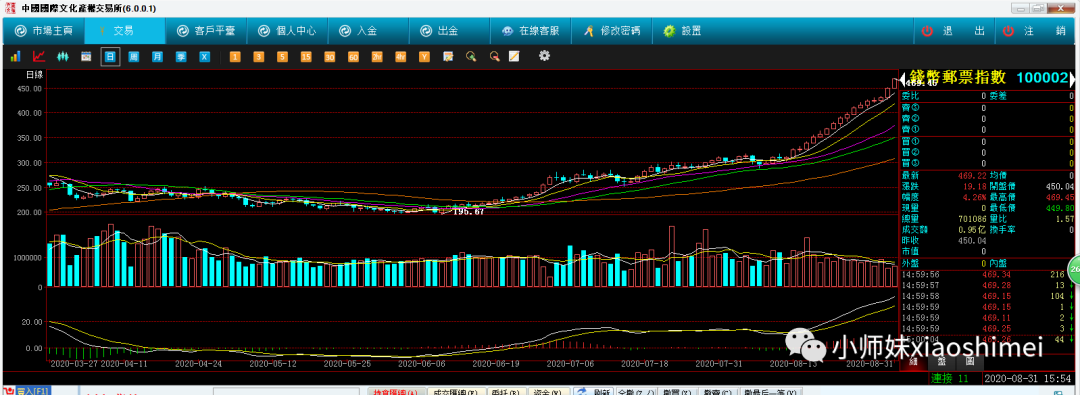 今天周一。国际文交所大盘慷慨激昂,满屏涨停板,市场信心满血归来。王主席旗下品种早盘抢先涨停;徐系低价系列全面开花;10点30分,河南风光遭遇资金追捧,一票难求。