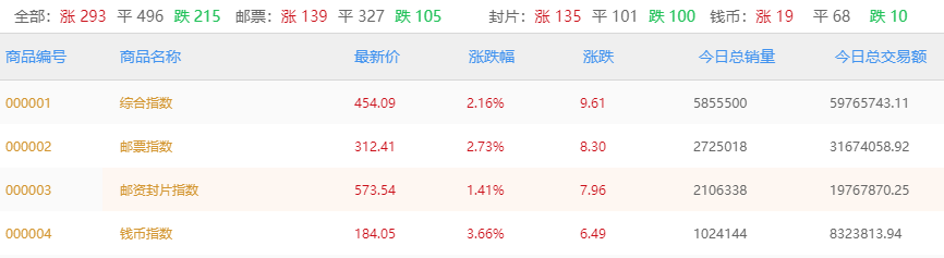 京东文娱寄卖商城商品行情(目前主要分析邮资封片、邮票和钱币板块),以下图表皆可点击放大查看。
