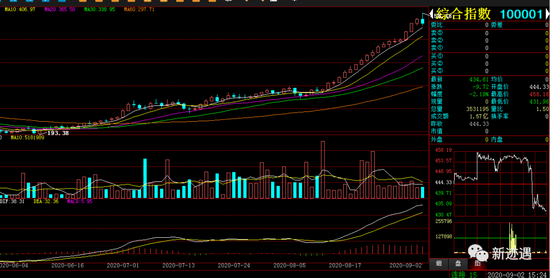 9月2号,周三,国际大盘下午突然风雨突变,本来预计的19连阳,被终结。