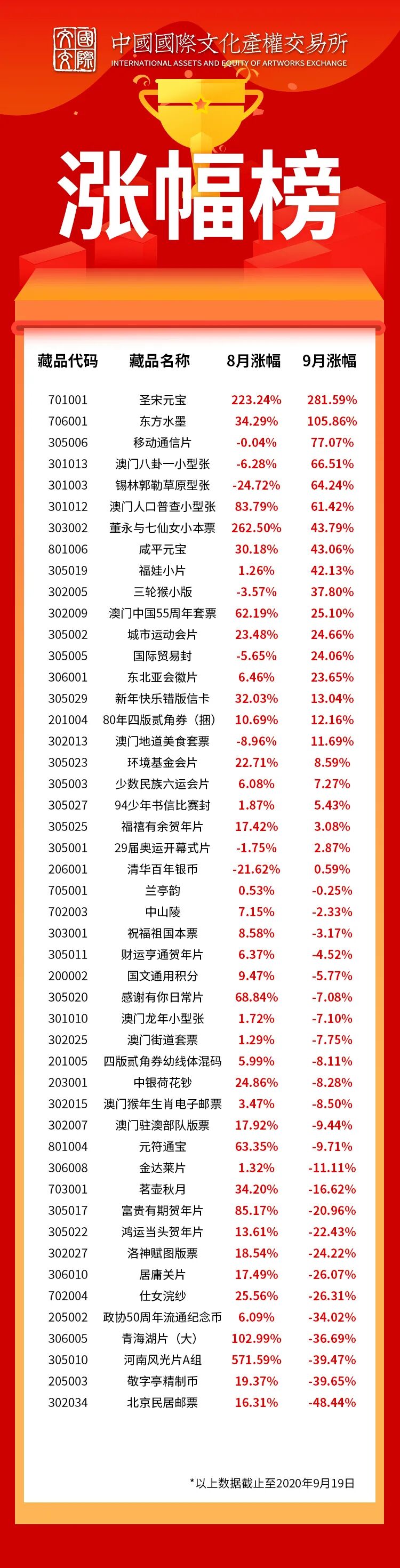 9月涨幅榜: