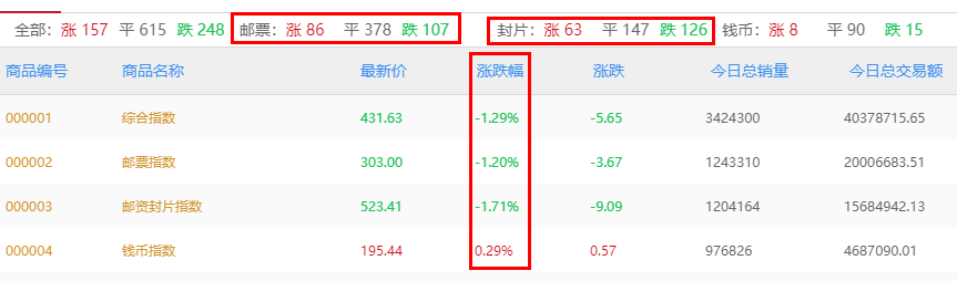 京东文娱寄卖商城商品行情(目前主要分析邮资封片、邮票和钱币板块),以下图表皆可点击放大查看。