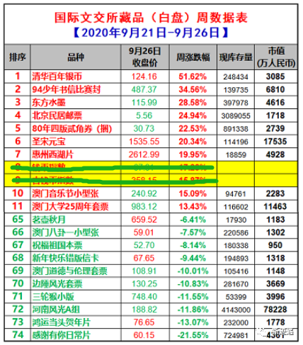 前期高人气、超强势品种河南风光、七仙女在本周都走出调整。河南依然对国际人气和行情影响较大。周涨幅靠前的品种有清华、94书信、东方水墨、民居、四毛、圣宋等,跌幅较大的是感谢、鸿运、河南、三轮猴、边陲等。