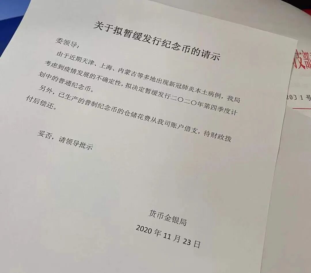 认为各地疫情出现反复,建议申请暂缓发行纪念币。