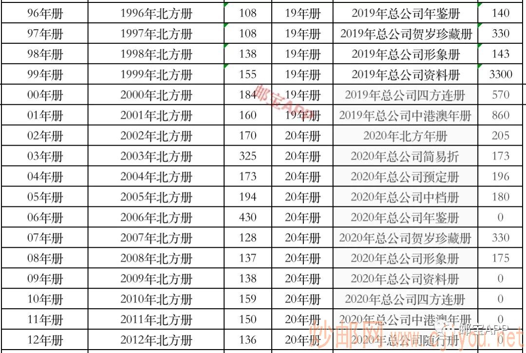 年册最新行情 日期:2021-01-07 年册最新行情 邮宝APP 特别提醒:邮宝APP中所有产品的价格为市场大宗交易价格、且不含税点。零售价可能在此基础上浮动10-20%。另外,因篇幅所限,本文亦未列出邮币卡的所有品种。查询更多价格,请登录邮宝APP