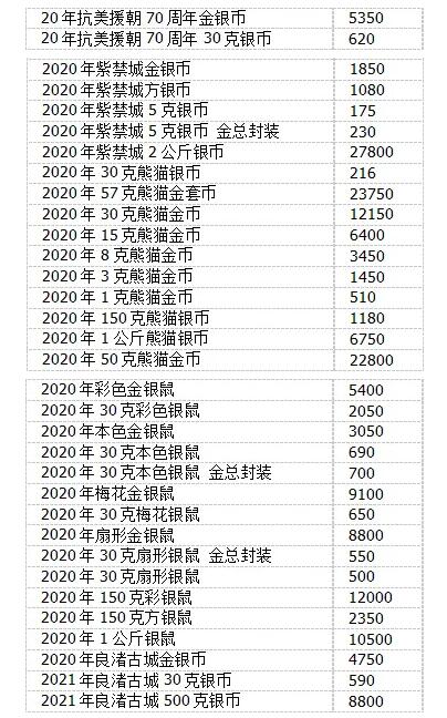 金银币版块新品近期市场价格如下: