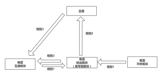 三、 白盤、晚盤(精選板塊、互通板塊、平移板塊)互通規則: