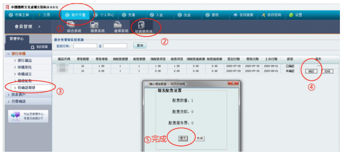 電腦客戶端操作確認方式:登錄電腦客戶端→進入客戶平臺→投資類系統→待確認增發→對“配送藏品、數量”進行確認操作。