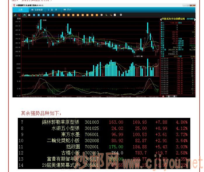 【国文白盘】缩普指数再创新高、第二只万元缩普诞生! 日期:2021-02-03 【国文白盘】缩普指数再创新高、第二只万元缩普诞生! 文交所资讯君 【今日行情】行情综述:今日综合指数高开低走,早盘一度下探至458点附近,午后,多头发力,缓缓向上拉升,最终综指跌幅-0.80%,报收460.45点。钱币邮票指数跌幅-0.83%,收于434.03点,大盘总成交金额:3.18亿。指数方面:缩普指数今日微调-0.16%,收于342.91点,盘中创356.67点历史新高! 个品方面:圆系《澳门大学25周年套票》、《敬字亭精制币》两只个品强势封板,《青海湖片大片》今日上涨6.48%,盘中创下创下历史新高10360.93CNH,第二只万元缩普应运而生!《敬字亭精制币》今日两连板,强势站上所有均线,市值重回3000万CNH大关! SUN系《94少年书信比赛封》今日四连板,近五个交易日涨幅近45%,市值达6000万CNH。 钱币板块《四版贰角券幼线体混码》今日异军突起,尾盘强势封板,能否继续向上,我们拭目以待! 其余强势品种如下: 另:《闹天宫彩金》、《收月兔彩金》、《二轮扇金龙》、《清华百年金币》等12个品种正在提货转入中南京、中南提货时间: 9:30-16:00;
