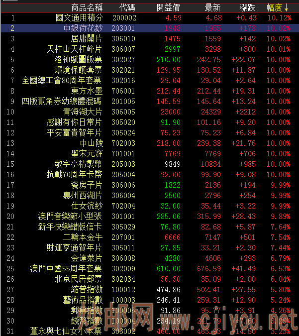 指数方面:钱币邮票指数、钱币指数今日携手再创历史新高!