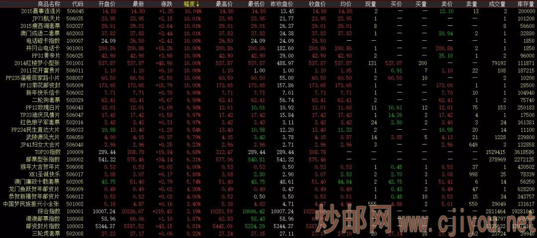 环球文化——综指上涨(无敌剑客)2021.3.1 日期:2021-03-01 环球文化——综指上涨(无敌剑客)2021.3.1 香港环球文化艺术产权交易中心 点击上方蓝字关注我们 今日环球综合指数上涨219.43点,涨幅2.19%,收报10226.67点。分类指数方面,邮资封片、邮票型张、TOP20、港澳邮票、电话磁卡微涨,缩量普片、金银纸币下调。昼盘:红楼梦小型张连续18天涨停封盘,盘中交易活跃,持续拉升中,喜事连连、澳门成语、黄帝片、花开片、航天片、温暖回家路、瘦西湖开盘上攻小幅成交。成交活跃度方面终审法院、唐诗、木兰辞小型张、三轮羊、三国五早盘微涨交投活跃,午盘持续跟进,领跑成交榜。蛇行大运、海事、香港猴、三轮虎、夜宴图、木兰辞套票、红小版走势稳健微涨成交横盘收尾,买卖互动卖盘微涨大单交投,成交量扩大。最终你相信什么就能成为什么。因为世界上最可怕的二个词,一个叫认真,一个叫执着,认真的人改变自己,执着的人改变命运。投资有风险,入市需谨慎!