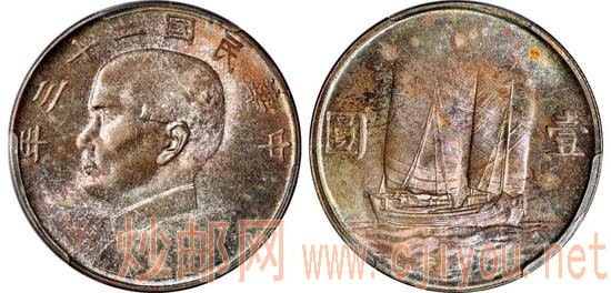 民国二十三年孙中山像背帆船壹圆银币/PCGS MS66