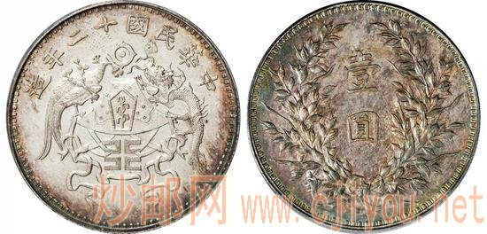 民国十二年造龙凤小字版壹圆银币/PCGS MS63