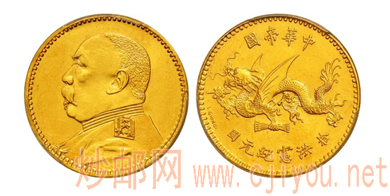 实行金本位制,一直是晚清及民初官方币制改革的目标,朝代更替,发行金币的构想也并未改变。1915年12月12日,大总统袁世凯欲改民主共和政体为君主立宪,登极称帝,定国号为中华帝国,年号洪宪。“洪宪纪元”拾圆金币,就是财政部为配合袁世凯登基,而准备发行的一种金币,俗称“小飞龙金币”,由天津造币总厂意大利籍总雕刻师路易·乔治(Luigi Giorgi)刻模。据相关资料记载,金币的币模雕成之后,仅压印了极少数成品送到大典筹备处,但不久帝制撤销,金币遂停铸,铸额极少。