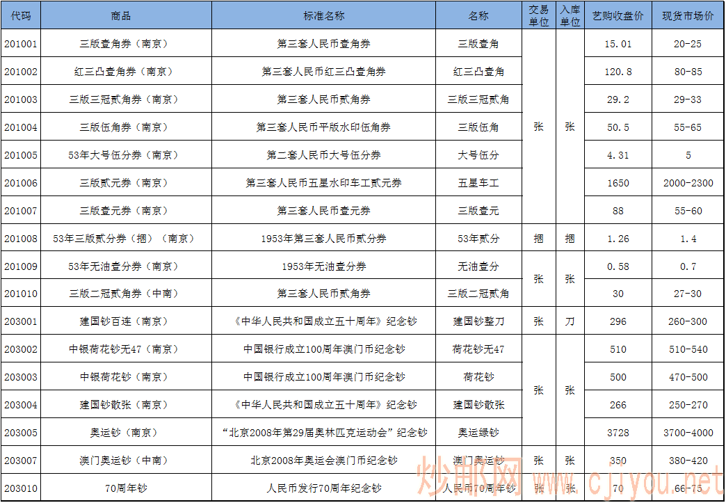 7.26金网艺购盘面价与现货市场价对比(纸钞篇)-摸鱼集藏