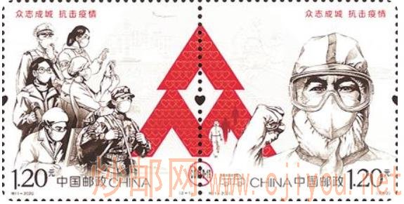 《众志成城 抗击疫情》特种邮票就将伟大的抗疫精神艺术化地定格在画面上:两枚邮票以红色的“众”字紧紧相连,寓意在党中央坚强领导下,举国同心凝聚起众志成城、抗击疫情的强大力量。消灭新冠肺炎图案置于“众”字之下,强化战“疫”视觉效果,寓意全国人民万众一心、战胜疫情的坚定决心。邮票的左图集中展现了解放军、医护人员、科研工作者、社区工作者、人民警察、志愿者群体形象。背景中城镇楼宇和乡村景象,体现城乡人人参与防控,突出全民抗疫的主题。飞机、轮船、货车、高铁等元素,充分展现全国各地团结一心共同抗疫的感人场面。右图是拳头紧握、刚毅决然的医务工作者形象,背景饰以救治场景、逆行支援背影、方舱医院等,刻画出医护人员不畏艰险、救死扶伤、医者仁心、大爱无疆的崇高精神。画面以白色为底,淡淡的水墨勾勒出生动的人物形象,那凸显的、颗颗红心组成的“众”字,展现了无穷的力量;那坚定的目光、紧握的拳头,是迎难而上的决心,也是对党忠诚、不负人民的无声誓言。 历史川流不息,精神代代相传。邮票,是党史学习教育中独特的艺术载体,邮票背后有太多红色故事等待我们去挖掘去诠释。弘扬光荣传统、赓续红色血脉,把伟大建党精神继承下去、发扬光大是新时代的新使命。方寸之间树立的精神丰碑,将永远铭记在人们心中。(李梅 中国邮政邮票博物馆馆员)