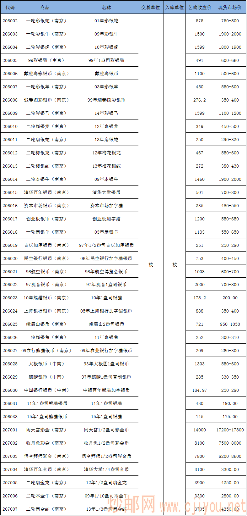 9.10金网艺购盘面价与现货市场价对比(金银币篇)-摸鱼集藏