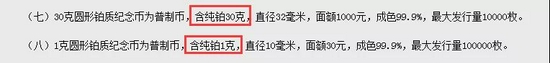 亮点2:首现1克铂币