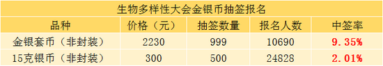 今天上午12点,生物多样性大会金银币抽签报名结束,据统计,两个规格合计报名次数超3.5万次。