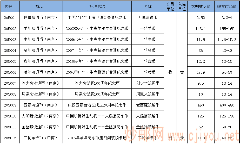 10.18金网艺购盘面价与现货市场价对比(纪念币篇)-摸鱼集藏