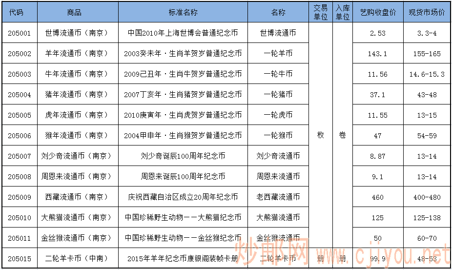 10.25金网艺购盘面价与现货市场价对比(纪念币篇)