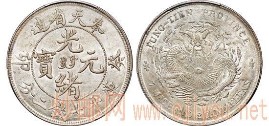 奉天机器局始建于光绪二十二年(1896年),是东北地区最早兼造钱币的兵工厂。1900年庚子事变,沙俄军队攻陷奉天,机器局被俄军占据,厂房设备遭到严重破坏。1902年,当局经交涉索回机器局并于次年重建。重新兴建的奉天机器局将军火制造与铸币分开行事,成立了“奉天制造银元总局”,并于同年十月开铸“癸卯奉天省造光绪元宝”纪年银币。但是,此年份银币只铸行了一年,便因爆发日俄战争再次停铸,铸造时间短暂,存世较少。此版银币依中央满文不同,可分“宝奉”“奉宝”二种版别,其中“宝奉”版的存世数量远少于“奉宝”版。据资深人士对2011至2021年海内外公开拍卖的数据统计,近十年来,“宝奉”版出现的比率大约是“奉宝”版的三分之一,其中品相能达到MS级者屈指可数。此枚“宝奉”版银币版底细腻无伤,龙鳞满打,品相可谓众里寻它千百度,殊为难得。