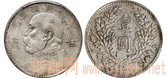 民国三年袁世凯像“甘肃”加字壹圆银币/PCGS XF45