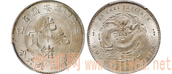 光绪二十四年安徽省造光绪元宝A.S.T.C。版库平七钱二分银币/PCGS MS64