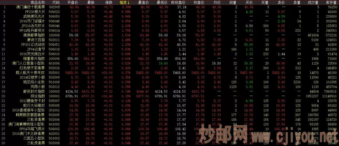 环球文化——综指微涨(无敌剑客)2021.12.13 日期:2021-12-13 今日环球综合指数上涨10.4点,涨幅0.15%,综合指数6797.31。分类指数方面邮票微涨,邮资封片微涨。成交活跃度方面:三国五,海事,三轮虎交投依旧活跃,午盘持续跟进,领跑成交榜。木兰辞,夜宴图走势稳健微涨成交横盘收尾,买卖互动卖盘微涨大单投,成交量扩大。行情就是一个大舞台,不是所有的故事都可以陈述,人是需要某种信念来激励和约束的,人静而后安,安而能后定。特别风险提示,以上信息仅供参考,不作为投资依据。交易有风险,入市需谨慎。请投资人保持独立思考判断!