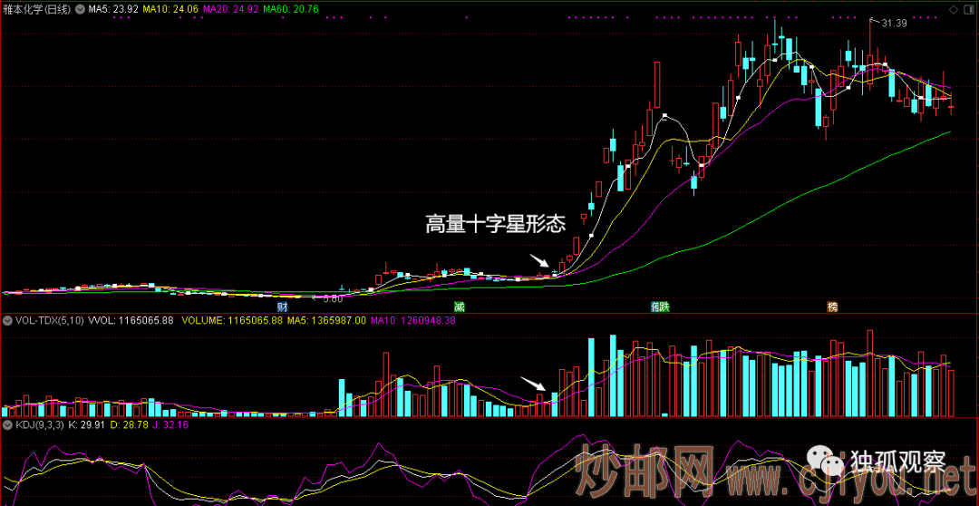 高量十字星形态是我们捕捉大牛票的一个参考形态。其中,很重要的一个指标就是成交量,成交量的变化会反映出主力运作的一个痕迹,成交量也是一个十分真实的一个指标,主力洗盘的假动作有很多,但是在成交量上作假的成本太大,不太容易动手脚。因此,学会看成交量是十分重要的。